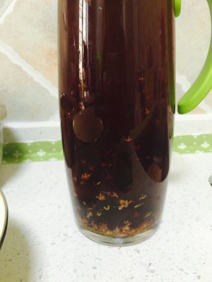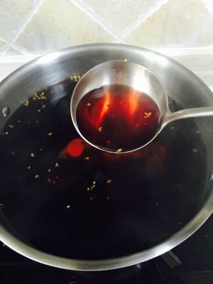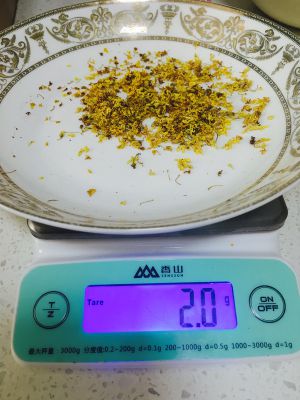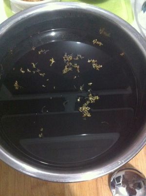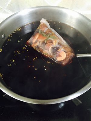 将汤汁过滤出来,趁热加入少许桂花,用热气将桂花的香味激发出来