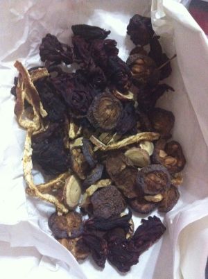 所有食材放入调料包,入砂锅,倒入矿泉水,大火煮沸,转小火,放入冰糖煨20分钟,关火,去料包,晾凉,入冰箱冷藏,风味更佳。