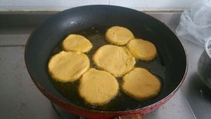 平底锅刷油,小火煎制南瓜饼,两面金黄即可。