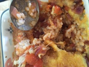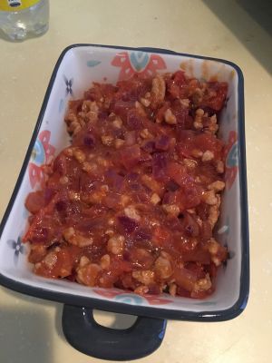 最后在盘子里装上饭,再把炒好的蕃茄肉酱盖在饭上,我摆这个造型实在是不好看哈,大家可以随心所欲!哈哈哈!