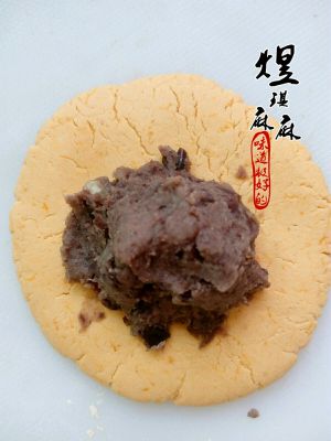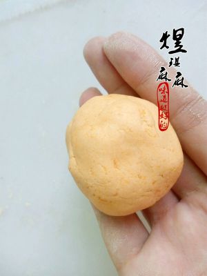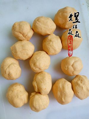 南瓜泥和糯米粉揉成面团,不用太多粉只要不沾手就可以了。