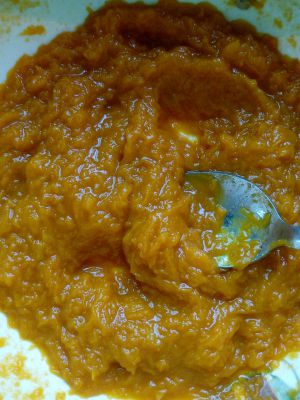 搅拌好的南瓜糊,我做的稍微稀了一点,还可以再粘稠一点。不喜欢吃太多面粉这样也就可以啦