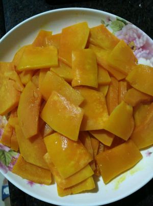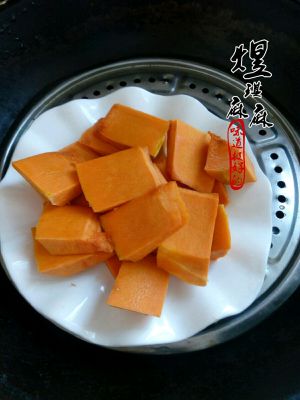 把洗好的南瓜切成小块蒸软或煮软,捣烂备用。