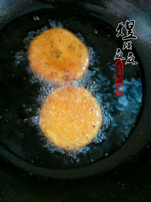 锅热,多放油,油热后,小火,放入南瓜饼炸到两面金黄即可。