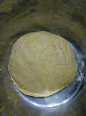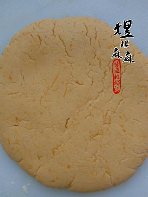 将南瓜泥与糯米粉活成软硬适中的面团。