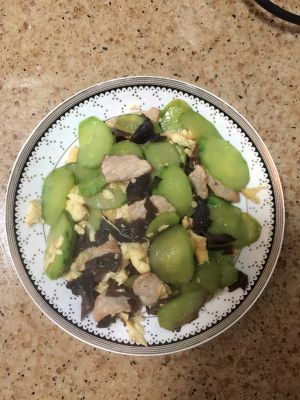 先放肉片翻炒后再按次序放入木耳,黄瓜和鸡蛋