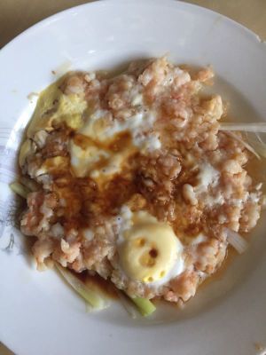 虾皮、虾头去掉,剁成碎末,姜片铺在盘底(有大葱也可以铺一点)。虾末用生粉抓一下放点盐像做肉饼一样铺在姜片上(上面打两个鹌鹑蛋,没有也可以不放)