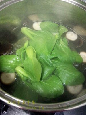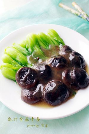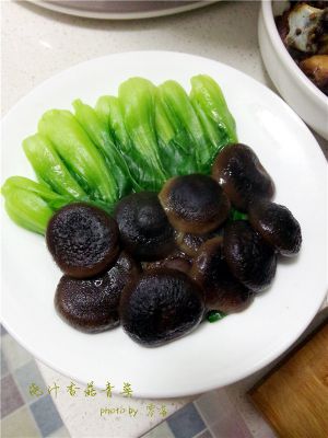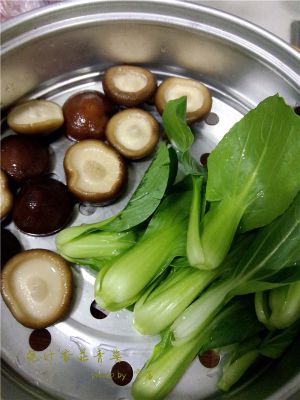 香菇去蒂,用清水泡一泡,洗净;小青菜也择洗干净;