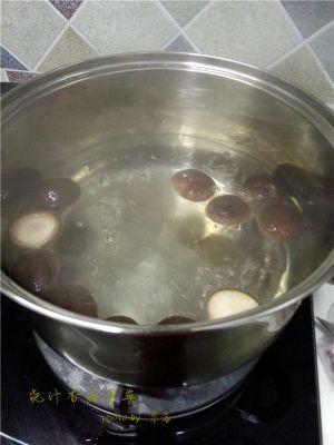 锅里倒入清水烧开,调入适量盐,将香菇放进去烫几分钟;