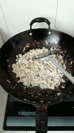 油烧五六分热时把肉丝下锅过油。