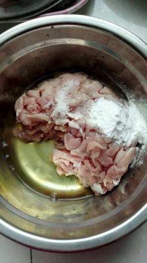 瘦肉切丝,放一个蛋清,一勺淀粉,抓匀备用。