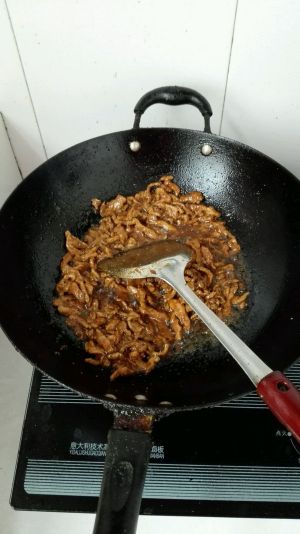 放肉丝,炒至收汁