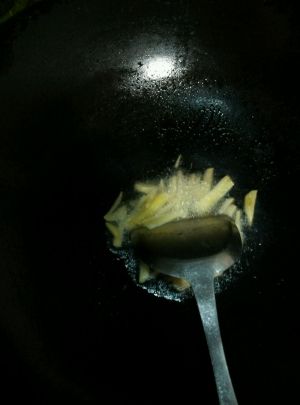 姜切丝,蒜头拍成蒜末,锅里热油,放入姜丝爆香