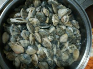 花蛤买回来后放盐水里十五分钟到,让它把沙子吐出来,然后洗净待用……