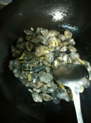3翻炒等花蛤慢慢张开口, 关火,炒时间太长肉会变老。出锅!