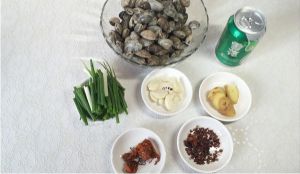 准备食材: 花蛤 啤酒 小葱 大蒜 姜片 火锅底料 花椒大料