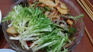 成品如图。为了好看,放了些苦菊上去,既爽口,又去火。
