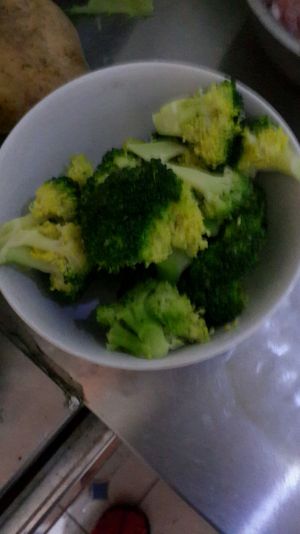 花菜,土豆,藕片,金针菇什么的放在开水里煮个半熟,捞出来控水,水越少越好