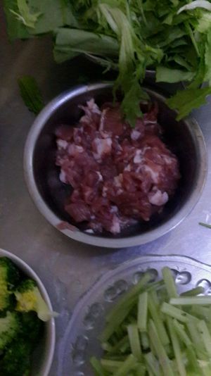 将所有食材入热水煮两分钟 (肉类可以上火煎熟)