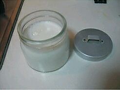 牛奶倒入烫过晾干的盆中,加入菌粉搅拌均匀