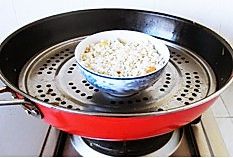 倒入拌好米,上锅蒸50分钟,或用高压锅蒸20分钟即可