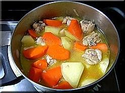 加入水沫过所有食材,边煮边将浮起的泡沫滤掉 加入咖喱粉 熬煮!成粘稠状出锅!