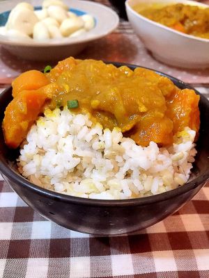 摆放上咖喱鸡,浇上咖喱汁,香喷喷的咖喱鸡饭就可以开动了~