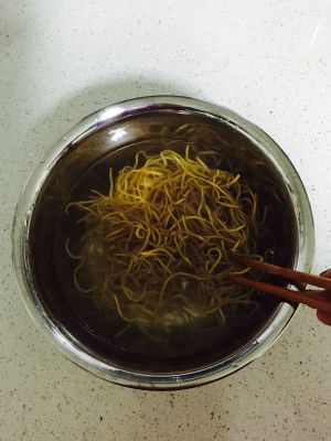 将煮好的面放入凉水焯一下,这样面条会更劲道。立即捞出,放入碗中备用。
