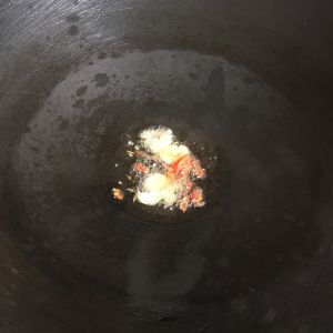 锅底烧干放油,把蒜、辣椒爆香