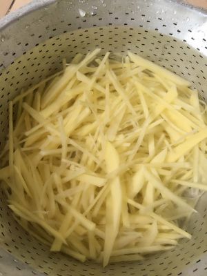 放在水里泡一下,去掉切口的淀粉。然后捞起来沥干水备用。