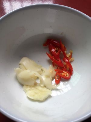 蒜拍碎,辣椒切小段备用