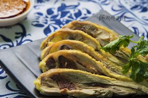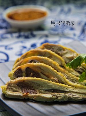 最后在鸡丝卷上淋上牛肉酱即可(酱料可以选择自己爱吃的各种酱!)