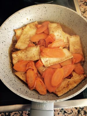 倒入豆腐块,调入适量味极鲜酱油和老抽调颜色,调入盐(可以放一些川辣酱,颜色和味道都更好)