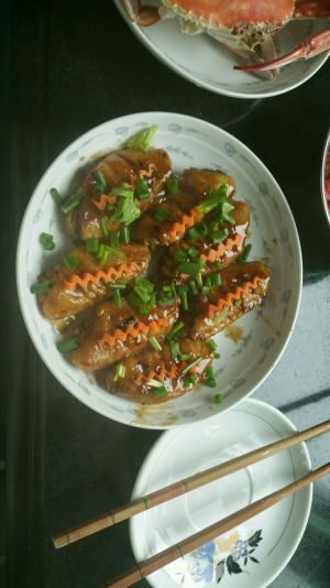 第一次心血来潮发这个,没有过程照,结果照上先。步骤:1,锅里倒水烧开,鸡翅洗净,过开水。2,鸡翅捞出,在鸡翅两面划几刀,晾干。3,锅里倒少许油(鸡翅里含油),中火,油温不要过热,用筷子把鸡翅一个一个下锅,摆好。4,偶尔翻翻鸡翅,不要焦了,等鸡翅表面带黄色,放少许盐,再翻几下,倒可乐,漫过鸡翅。5,偶尔,用铲子翻锅,等可乐里的水分烧得差不多了,起锅,装饰。