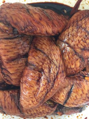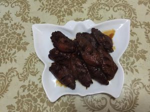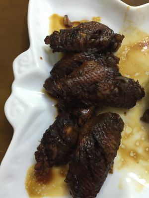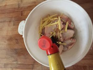 用姜丝,酱油腌制鸡翅(每个鸡翅都要沾到酱油即可)