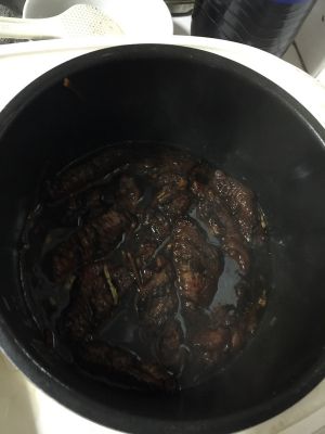 可乐放好后放了一勺盐,少许味精,大火开后改中火,十五分钟后收汁。