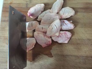 把翅中在凉水浸泡半小时后洗净,浸泡是为了把血水泡出。