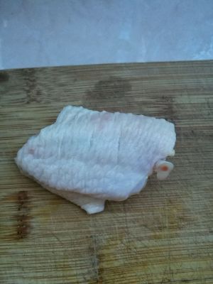 把鸡翅洗净用刀划两道杠〔也可以用尖刀扎些小眼〕以便更好的入味