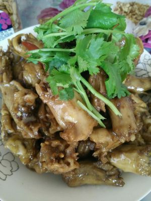 收汁儿成功,出锅,装盘,可放几根香菜点缀一下,也可以不放