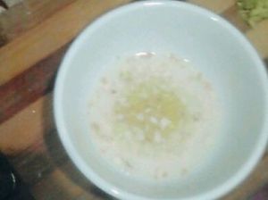 大蒜拍扁,用擀面杖捣碎成蒜泥(我做的是两人份的,量多,自己吃的话根据自己口味加就好)