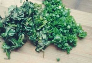放入老干妈豆豉,香菜,小米辣,酸豇豆,撒上适量的葱花,搅拌均匀即可食用!