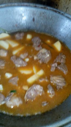 加入切好的土豆,翻炒两下,加入水,与鸭腿齐平就可以了,大火烧开,然后转小火烧20分钟