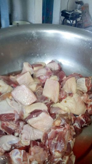 市场买回的鸭腿切块凉水浸泡去除血水,放入一勺料酒