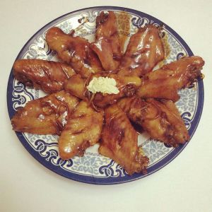 装盘,然后把剩下的酱汁均匀的浇在鸡翅上。上桌开吃