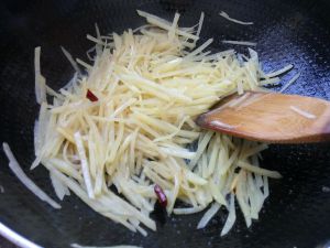 将土豆切丝,在凉水中淘两遍去掉淀粉