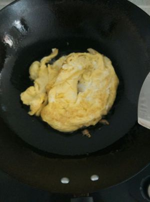 热锅加油至七成熟,倒入鸡蛋炒至金黄,盛出备用。