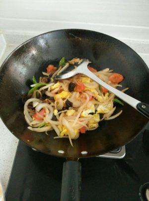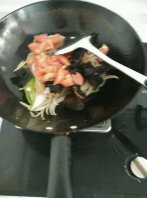 翻炒均匀后加入西红柿及发好的黑木耳。