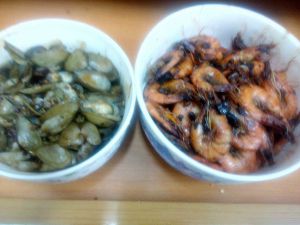 放入海虾,煸炒,加入少许糖,白酒调味,因为郫县豆瓣放的比较多,就不用放盐了