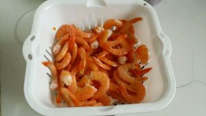 虾洗净去虾线胡须,胡萝卜线椒蒜洗净备用
