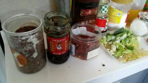 洗干净的虾,放洋葱,姜,生抽,胡椒粉,料酒腌制20分钟!
